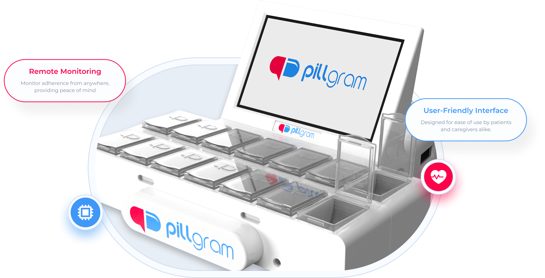 Pillgram is not just another pill dispenser; it is a comprehensive, AI-assisted medication management solution that integrates with a user-friendly app to provide patients and caregivers peace of mind. The system ensures doses are never missed, tracking and verifying every intake with visual guidance and timed alerts.
